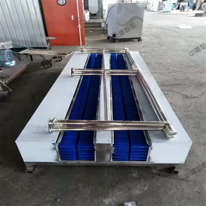 矿用洗靴机是井下人员升井后通过洗靴机时,洗靴机全智能控水、电、动力系统的运行,可以一次性洗净靴子底纹和靴面靴筒上的煤泥,保持靴子表面的清洁。矿用洗靴机是主要由洗靴系统、支撑部件、传动系统、电控系统、连接部件、人体行走扶手等构成,安置在井口或副井井口洗靴池处。升井人员走至洗靴机时,人体红外线传感器便会指令自动打开传动系统和喷淋系统,矿工行走或任意停留在刷洗靴机中间,就可自动把胶靴底、靴面、靴帮、靴尖、靴跟刷得干干净净,彻底解决了员工升井后还要用手刷靴,费时费力还刷不干净的问题,减轻了员工劳动强度,保持了井口卫生,减轻了粉尘污染,又能节约用水,是矿井标准化建设的可靠产品。
