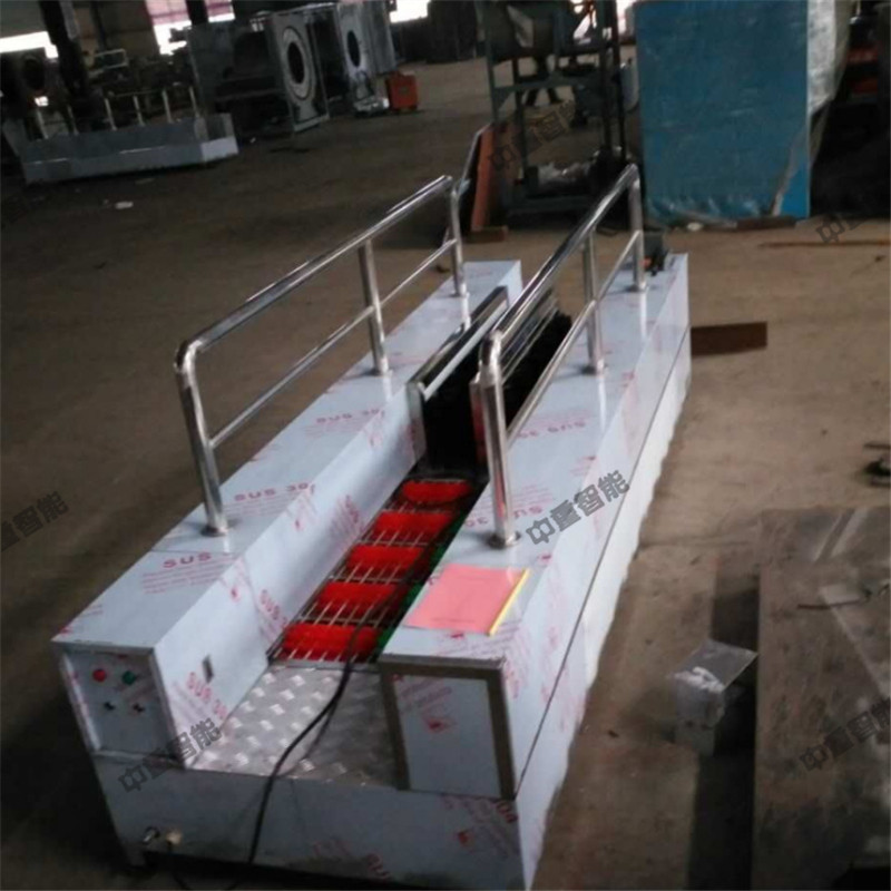 矿用洗靴机是井下人员升井后通过洗靴机时,洗靴机全智能控水、电、动力系统的运行,可以一次性洗净靴子底纹和靴面靴筒上的煤泥,保持靴子表面的清洁。矿用洗靴机是主要由洗靴系统、支撑部件、传动系统、电控系统、连接部件、人体行走扶手等构成,安置在井口或副井井口洗靴池处。升井人员走至洗靴机时,人体红外线传感器便会指令自动打开传动系统和喷淋系统,矿工行走或任意停留在刷洗靴机中间,就可自动把胶靴底、靴面、靴帮、靴尖、靴跟刷得干干净净,彻底解决了员工升井后还要用手刷靴,费时费力还刷不干净的问题,减轻了员工劳动强度,保持了井口卫生,减轻了粉尘污染,又能节约用水,是矿井标准化建设的可靠产品。