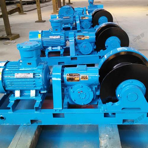 回柱绞车是煤矿井下回柱放顶之用,适用于薄煤层和急倾斜采煤工作面,以及在各种采煤工作面上回收被矸石长结的金属支柱或沉入底板。回柱绞车也可用作移溜槽,搬移皮带运输机头等辅助牵引工作。回柱绞车的电气设备具有防爆性能,可用于有煤尘及瓦斯的矿井中。本绞车的类型为单筒缠绕,采用涡轮蜗杆减速器和开式齿轮传动。绞车采用涡轮蜗杆减速器,必须采用水平安装方式,,以确保涡轮蜗杆的浸油润滑质量。