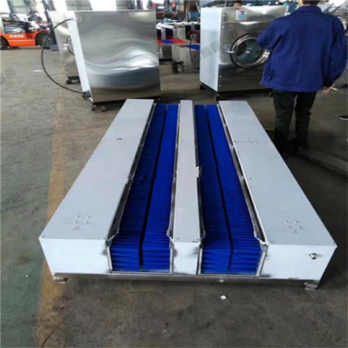 矿用无动力洗靴机是井下人员升井后通过洗靴机时,洗靴机全智能控水、电、动力系统的运行,可以一次性洗净靴子底纹和靴面靴筒上的煤泥,保持靴子表面的清洁。矿用洗靴机是主要由洗靴系统、支撑部件、传动系统、电控系统、连接部件、人体行走扶手等构成,安置在井口或副井井口洗靴池处。升井人员走至洗靴机时,人体红外线传感器便会指令自动打开传动系统和喷淋系统,矿工行走或任意停留在刷洗靴机中间,就可自动把胶靴底、靴面、靴帮、靴尖、靴跟刷得干干净净,彻底解决了员工升井后还要用手刷靴,费时费力还刷不干净的问题,减轻了员工劳动强度,保持了井口卫生,减轻了粉尘污染,又能节约用水,是矿井标准化建设的可靠产品。