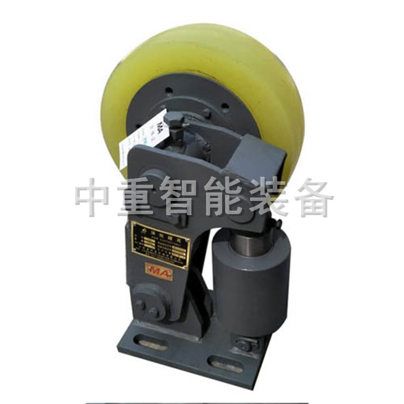 L系列滚轮罐耳用于矿山提升容器的导向缓冲,本产品采用先进的密封技术,适应淋水、煤尘等恶劣环境。轮头安装采用三锁紧结构,彻底避免掉轮头事故的发生。滚轮采用四氢呋喃-环氧丙烷共聚醚型聚氨酯浇注,具有高弹性、耐撕裂、抗水性、抗油性的优点。滚轮磨损补偿调节采用左、右旋螺杆,调节迅速便捷。机座、摆架采用优质钢板焊接成型,体积小、重量轻,安装轻便。